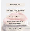 Ce gant démaquillant est parfait pour toute personne souhaitant adopter une méthode de démaquillage écologique et efficace. Idéal pour ceux et celles qui veulent réduire leur empreinte écologique en évitant l'utilisation de produits démaquillants jetables, il est adapté à tous les types de peau grâce à sa douceur et à sa certification OEKO-TEX, classe I.