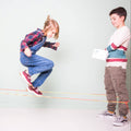 Qui n'a jamais joué à l'élastique dans la cours de Récré ? Me&Mine remet ce célèbre jeu au goût du jour avec 5 mètres de corde élastique aux couleurs fluorescentes (les couleurs peuvent varier), un sac en tissu pour le ranger et des instructions pour quelques routines coordonnées.